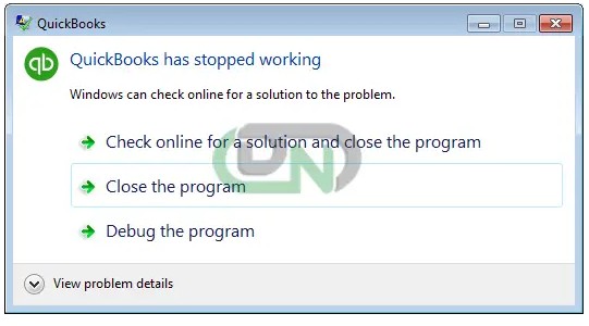 - The error says QuickBooks has gone ahead to stop working.