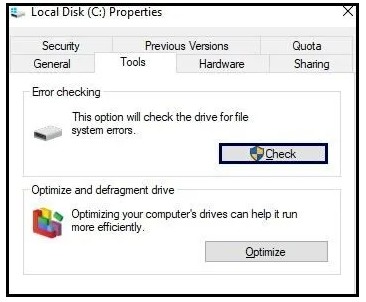 - Then select Properties, and on the Tools tab, select Check Now.